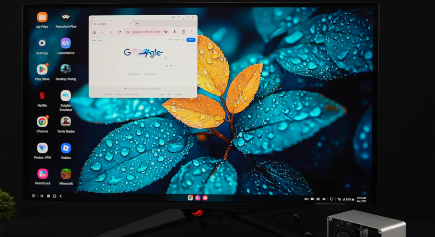 A placa-mãe permaneceu intacta mesmo após o display quebrar, o que abriu espaço para a modificação. Compatível de fábrica com o Samsung DeX, o S20 FE já conta com todos os drivers necessários para exibir uma interface desktop semelhante ao Windows ou macOS, bastando conectá-lo a um monitor externo via USB-C.